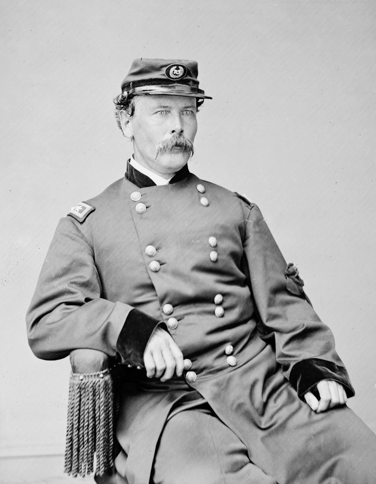 An article in the April 2, 1898, Brooklyn Eagle mentioned Daniel "sailed out of New Bedford for a three year cruise on a whaler in the Arctic Ocean" in 1857 when he was 17. On September 16, 1861, he enlisted as a private in Company D First Massachusetts Volunteer Cavalry, for three years. At the time of his enlistment George was twenty-one years of age. He was five feet seven and one-half inches tall, with blue eyes, brown hair and a light complexion. Daniel was promoted to sergeant February 8, 1863. He was captured June 17, 1863, at the Battle of Aldie, Virginia and paroled at Annapolis in August.